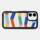 This stylish phone case features a colorful and whimsical pattern of geometric shapes and stripes.