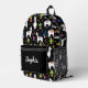 Cute Colorful Alpaca Cactus Custom Name Black Printed Backpack
