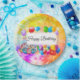 Cute, colorful balloons on colorful fireworks background, with text in the white banner...Happy Birthday...You can easily personalize with your choice of text.