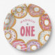 Cute Colorful Donuts One First Birthday Paper Plates features hand drawn donuts with colorful sprinkles and frosting.