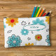 A cute personalized pencil pouch featuring your name and colorful red, orange and blue painted flowers. The perfect zipper case for storing your art supplies for back to school or any time of year.