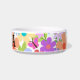 This is a heavy, durable bowl decorated with Tibbies of many colors, the perfect size for hungry/thirsty Tibs. The design is interesting and printing clear.
