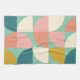A fun retro mid century modern style geometric shapes pattern in cute color shades of teal, mustard, coral, and pink.