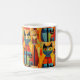 A whimsical and artistic mug featuring an illustration of cute colorful cats, simply being happy.