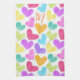 Cute Colorful Heart Pastel Valentine Love Monogram Kitchen Towel