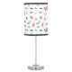 The lamp looks exactly like the picture, bright and colorful. The lamp shade is plastic not what I expected, however I love it! The printing is clear and the name can easily be read.