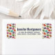 Address label with a cute pattern of macarons in many different colors with a faint polka dot pattern behind.