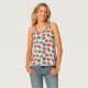 All-over print tank top with a cute pattern of macarons in many different colors with a faint polka dot pattern behind.