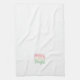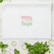 Modern Christmas kitchen towel featuring a cute and fun design with "Merry and Bright" in cheerful pastel pink and green casual lettering.
