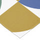 This stylish tablecloth features a modern geometric pattern of shapes in green, violet pink, goldenrod, and blue.