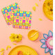 Gorgeous, colorful design featuring vintage, folk style drawing of flowers on a vibrant, tiles background. Modern and retro ornate pattern with pink, yellow and green elements. Sweet, elegant and stylish gift for every woman.