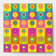 Gorgeous, colorful design featuring vintage, folk style drawing of flowers on a vibrant, tiles background. Modern and retro ornate pattern with pink, yellow and green elements. Sweet, elegant and stylish gift for every woman.