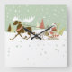 Cute colorful retro style christmas illustration with santa and his reindeer rushing true the snow.