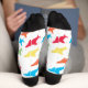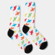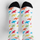 Cute shark socks with a pattern of colorful sharks on a white background. Simply add these socks to your cart, get them home, and then enjoy them wherever your feet may go.