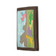 A cute and colourful dinosaur wallet. It comes with cartoon dinosaurs, a yellow Brachiosaurus, a purple Triceratops, a green Stegosaurus and a pink Pterodactylus. Background of mountains and clouds. This attractive design is great for kids who love Jurassic, prehistoric or dinosaur themes. Add the child's name to make it extra special.
