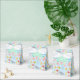 Pack your party favors, goodies and treats in this cute underwater animals pattern favor box with pastel blue and white bubbles background. It is colourful and attractive for kids who love under the sea theme ocean animals include yellow seahorse, blue jellyfish, pink starfish, pink squid, yellow and brown stripes fish, green fish, grey fish with stripes, red crab and green turtle. Adorable design that is sure to put a smile on children’s faces for an ocean theme party!