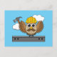 Cute Construction Worker Owl with Hard Hat Cartoon Holiday Postcard