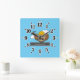 Cute Construction Worker Owl with Hard Hat Cartoon Square Wall Clock