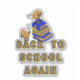 Sticker with funny cookies with books, pen and text BACK TO SCHOOL AGAIN