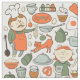Cute Cooking Kitchen Pots Pans Vintage Pattern Fabric