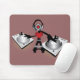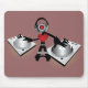 Funky custom taupe mousepad / mousemat with a cute and cool Eiffel Tower DJ cartoon character with a big red heart, headphones and spinning vinyl records on two decks - www.vectoropenstock.com - The background color is customizable - lots of colors to choose from. You can also personalize it with some text if you like - lots of fonts and colors to choose from. A groovy original gift for music lovers.