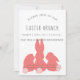 NewParkLane - Personalized Easter Brunch Invitation, with three cute Easter Bunnies in coral pink, and a coral pink gingham pattern on the backside. All text templates are easy to adjust in Zazzle!