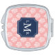 Cute Coral Pattern and Blue Monogram Makeup Mirror