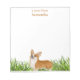 Personalize this cute, modern design by providing your text and a name. This pretty design has green grass with a Pembroke Welsh Corgi dog standing on it.