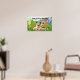 Fun Happy Birthday poster of a detailed illustrative style photo art of a funny corgi dog and cute teddy bear with party hats and floating balloons. Great idea for your party for your young child: son or daughter. You can customize the text to change name and message and order any of 5 sizes of this poster.