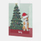 This beautiful Pembroke Welsh Corgi dog has a cute Santa Claus hat and an adorable head tilt. The pretty pup is sitting in front of a gorgeous Christmas tree decorated with colorful ornaments. Personalize your pet's name in lovely cursive under the wonderful drawing of my favorite doggy.