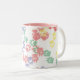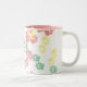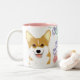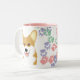 This is a special mug featuring a cute cartoon portrait of Peri the corgi painted by Lesley Anne Cornish, finished with multicoloured paw prints on the reverse.