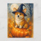 Cute Corgi Pumpkin Witch Witcher Happy Halloween Fall Autumn Postcard for Postcrossing