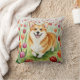 Cute Corgi Tulips Spring Pillow