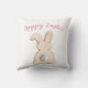 Cute easter throw pillow. White throw pillow featuring the back side of a cottontail bunny with the words "Happy Easter" in fun typography.