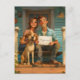 This is a cute postcard featuring a cute couple with a lovely dog. There is also a banner at the hand of the couple with a customizable text.