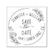 This stamp is a great accessory for any couple looking for a save the date stamp for all their wedding-related mailing. This design features "save the date" in the center of the design in a blend of hand-lettered fonts with your names, wedding date and wedding location in a circle around it. Around the outside of the stamp is a circular frame with 2 hand-drawn branches giving this stamp a rustic, botanical feel.