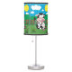 I have purchased other similar lamps. I use them as extra light for guest's. They are inexpensive, easy to assemble and good height for reading. I like that there are many pre-made shades to choose from and that, like this one, you can use your own art.