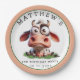 Serve up some farmyard fun with these adorable cow-themed paper plates! Featuring a cute cow and barnyard animals, these plates are perfect for a 2nd birthday party with a farm theme. Sturdy and practical for little hands, they make snack time extra special. Personalize with a name for a unique touch!