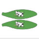 Our cute black and white friesian milking cow is in a meadow of green grass eating yellow daisies. Lots of bovine fun!