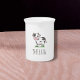 A Pitcher with a cute cow on grass and a customizable text, perfect for milk. A great idea for a gift or to decorate your kitchen!
