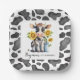 Cute Cow Sunflower Modern Farm Animal 1st Birthday Paper Plates