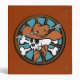 Cute cowboy skull and crossbones with arrow through his hat is set in front of a wagon wheel.