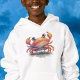 A boy's pullover hoodie with a watercolor illustration of a very cute crab.