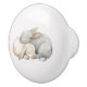 Cute Cream Grey Sleeping Bunnies Plaid Ceramic Knob
