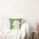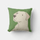 This cute cream Labrador puppy on a green background is sure to bring a smile to your face. The back of this pillow features customizable text for you to change or delete. You can also change the color of the pillow to match your decor.