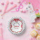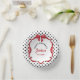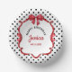 Elegant red bow and ribbon with polka dot background, birthday paper bowls, change the text to anything you want when ordering