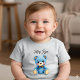 A sweet crocheted teddy bear themed personalized baby tee.. A sweet blue and brown crocheted teddy bear graphics, Add baby's name in the personalize area.