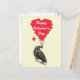 This alternative romantic gothic cute crow bird illustration with red valentines love heart balloon by changing can easily be personalized for a unique different modern alternative goth romantic Valentines day card or for a fun kids card for their friends.