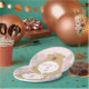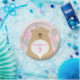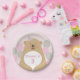 Kids' party plates with a cute cuddly teddy bear that can be personalized with a child's name and age. This is part of a range of matching teddy bear themed party goods including; invites, badges and thank you note cards.