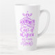 Tall latte mug with cute coffee quote in purple violet ombre watercolor calligraphy. This cute coffee saying makes you want to curl up on the couch with a good book right now doesn't it? The ornate hand lettering and calligraphy reads "happiness is a cup of coffee and a good book". Please browse our coffee quote collection for more tall white latte mugs - we have some of the best coffee sayings and they're a great gift for coffee lovers.
